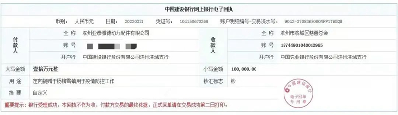 在疫情面前,全市是一個命運共同體,更是一個責(zé)任共同體。面對天災(zāi),疫情工作者首當(dāng)其沖卻寸步不讓,為全市市民的生命安全嘔心瀝血?!柏M曰無衣,與子同袍”,為了支援一線疫情工作者的抗疫工作,亞泰雅德于3月21日主動向濱州市濱城區(qū)慈善總會捐款10萬元,為打贏這場疫情防控阻擊戰(zhàn)貢獻自己的一份力量。我們將始終與一線疫情工作者同仇敵愾,共克時艱。