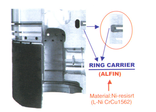 鑲鑄在柴油發(fā)動(dòng)機(jī)活塞的第一道環(huán)槽處,具有高耐磨性,可降低活塞頭部溫度,提高活塞使用壽命,降低油耗,減少?gòu)U氣排放。有助于提高發(fā)動(dòng)機(jī)功率,是柴油發(fā)動(dòng)機(jī)達(dá)到歐IV標(biāo)準(zhǔn)的關(guān)鍵技術(shù)之一,有利于節(jié)能和環(huán)境保護(hù)。